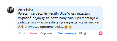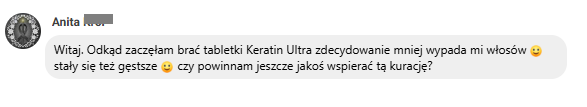 Opinie klientów mają charakter indywidualny i subiektywny. Efekty mogą się różnić w zależności od organizmu i stylu życia. Keratin Ultra to suplement diety, który nie zastępuje zróżnicowanej diety i zdrowego trybu życia.