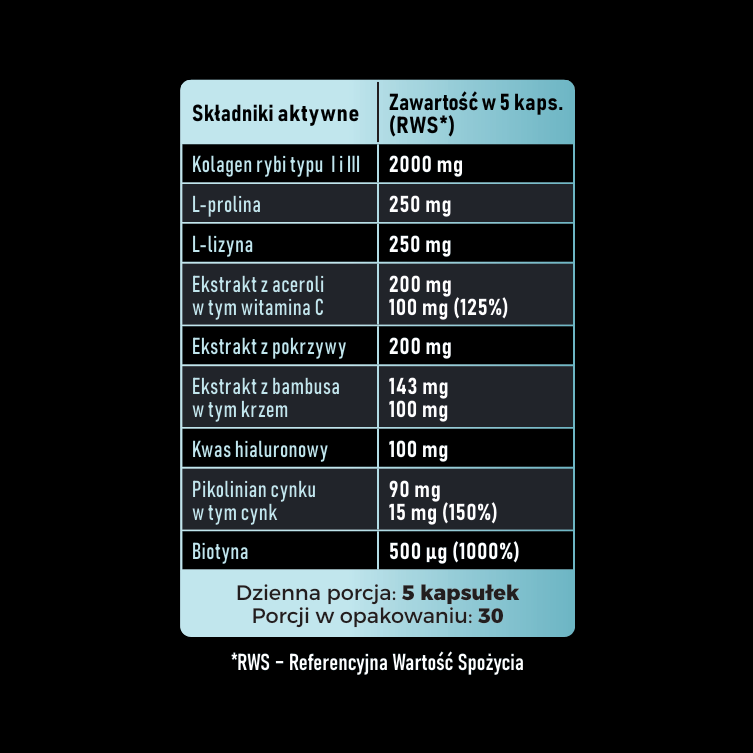 Ekstrakt z pędów bambusa — 143 mg, w tym krzem 100 mg